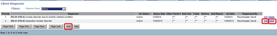 1. Click on the client name link to pull up the patient level diagnosis screen.