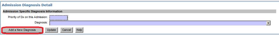 2. Click on the “Add Diagnosis” link to bring up the admission level diagnosis screen.