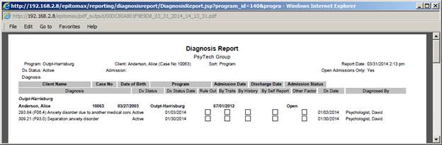 Also, any new admission you open will have its diagnosis automatically defaulted from the diagnosis entered on the client. This feature is configurable, contact PsyTech Solutions if you wish to turn this feature off.