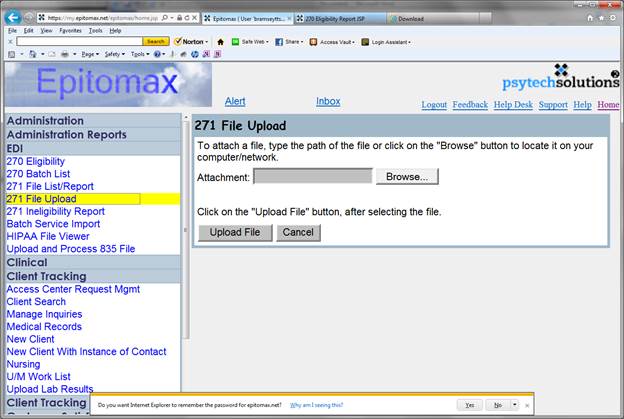 ·         Login to the payor/clearinghouse web portal and download the 271 eligibility response file to your computer/network.