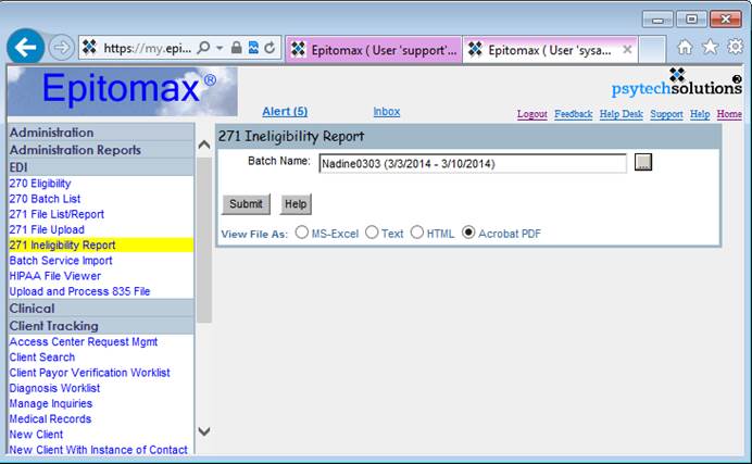 You must have the 270/271 transactions enabled with your payor/clearinghouse prior to using this feature, and the PsyTech Solutions staff must configure Epitomax for it as well.